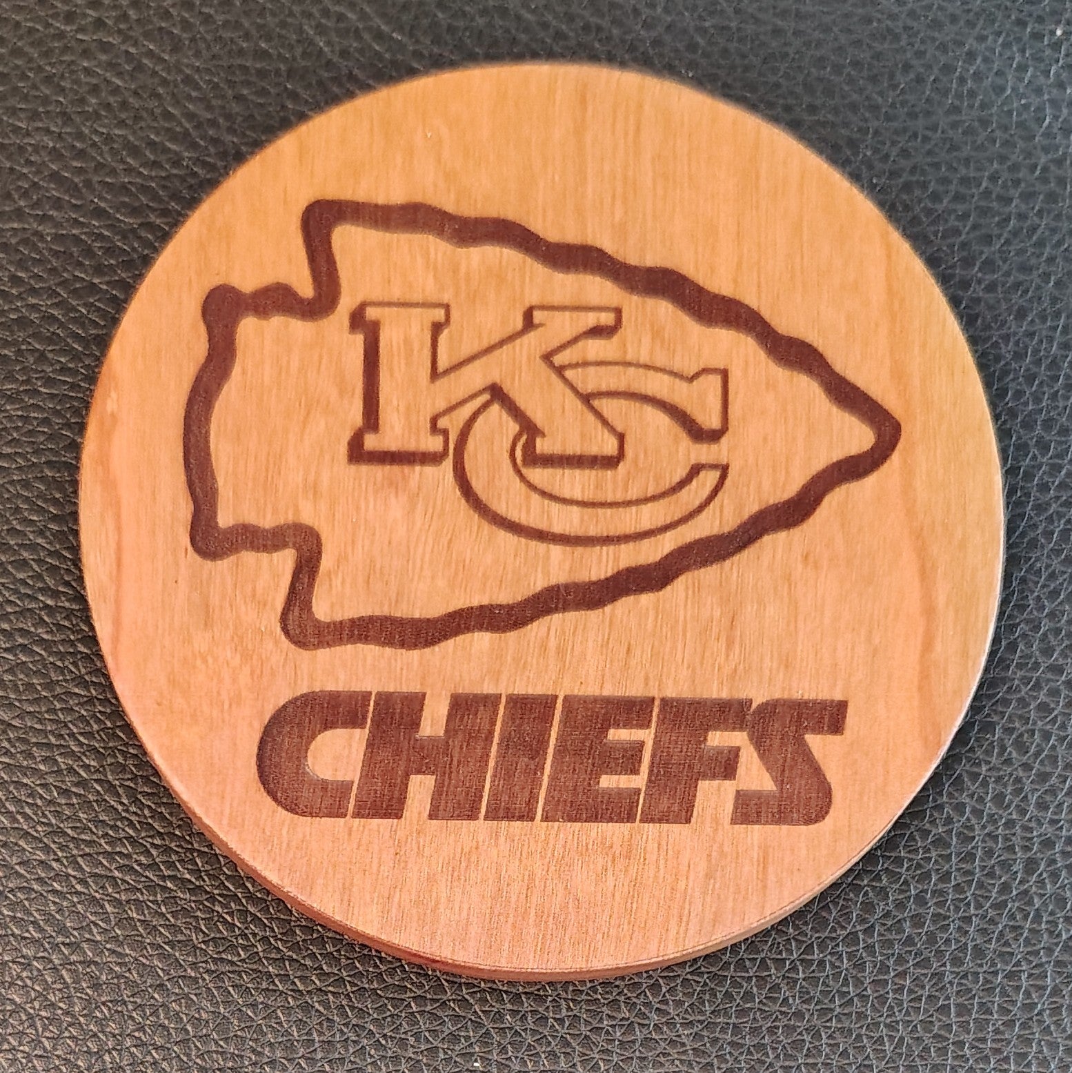 Solid cherry hardwood coaster, laser engraved. Hand cut, hand sanded and hand finished with spar urethane to seal out moisture. Approximately 3.75 inches in diameter and 0.25 inches thick.