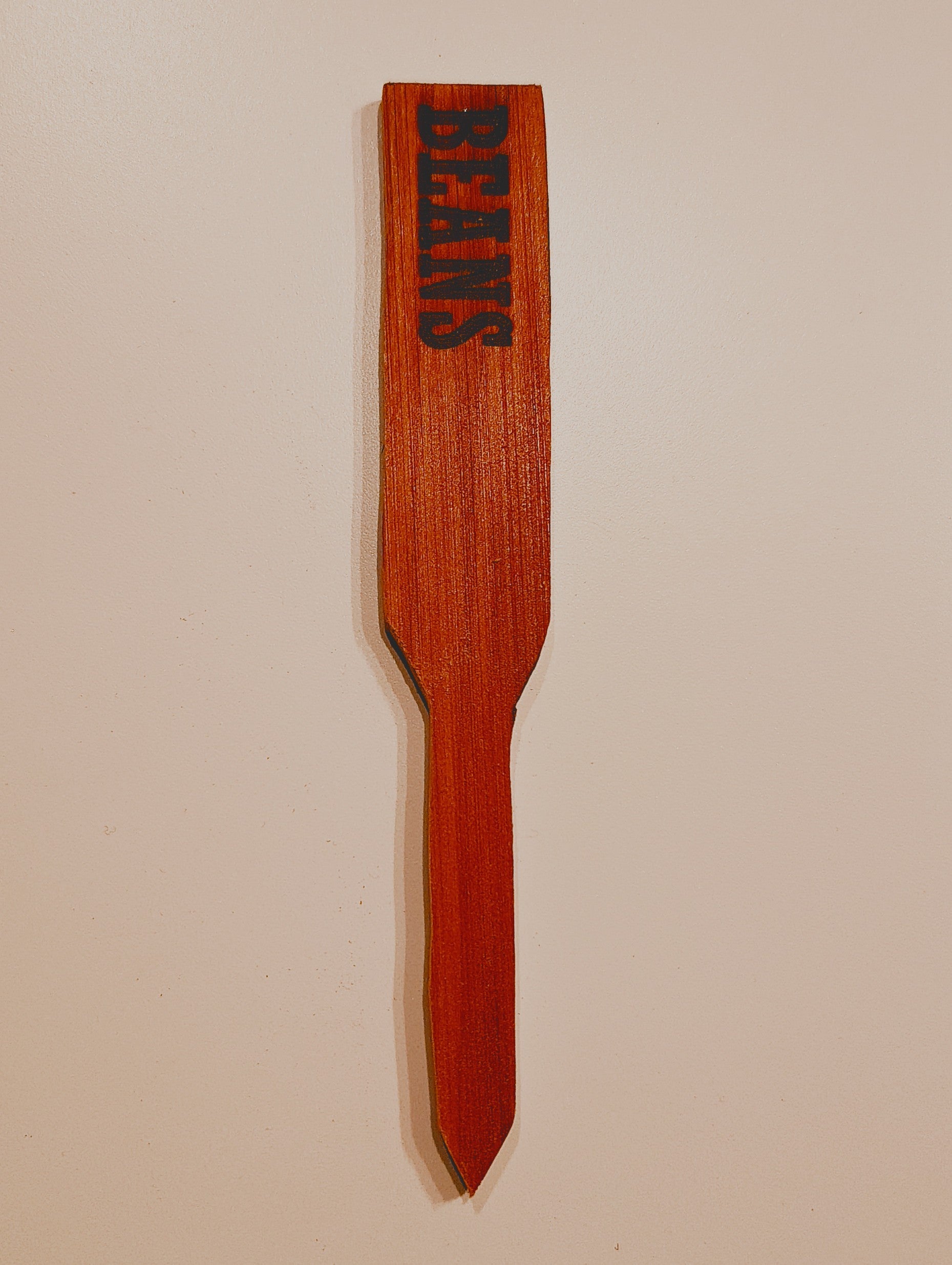 Plant marker made from aromatic red cedar. Approximately 5 inches long, 0.75 inches wide and 0.125 inches thick.