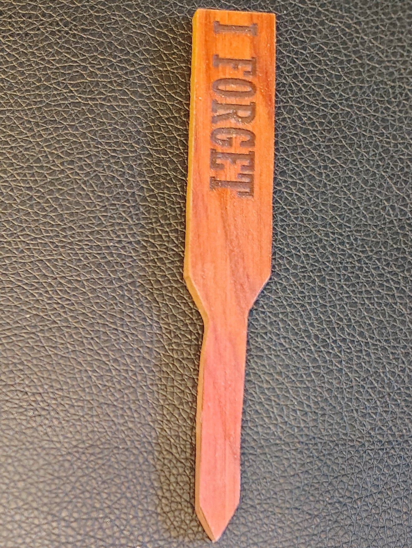 "I Forget" plant marker for when you can't remember what you planted! Made from aromatic red cedar. Approximately 5 inches long, 0.75 inches wide and 0.125 inches thick.